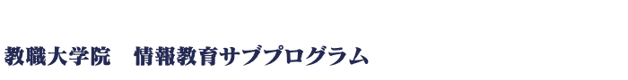 教育学研究科 教育学研究科専門職学位課程(教職大学院) 教育実践専門職高度化専攻 教科領域指導プログラム 情報教育サブプログラムは,⼩学校・中学校・⾼等学校の教科横断型情報教育とICT活⽤に着⽬し,情報機器の活⽤や各教科等における児童⽣徒の情報活⽤能⼒を⾼める指導⼒と授業評価および⾼等学校の共通教科・専⾨教科「情報科」の⾼度な実践的指導⼒と授業評価の⽅法を⾝につけることを目的としています.